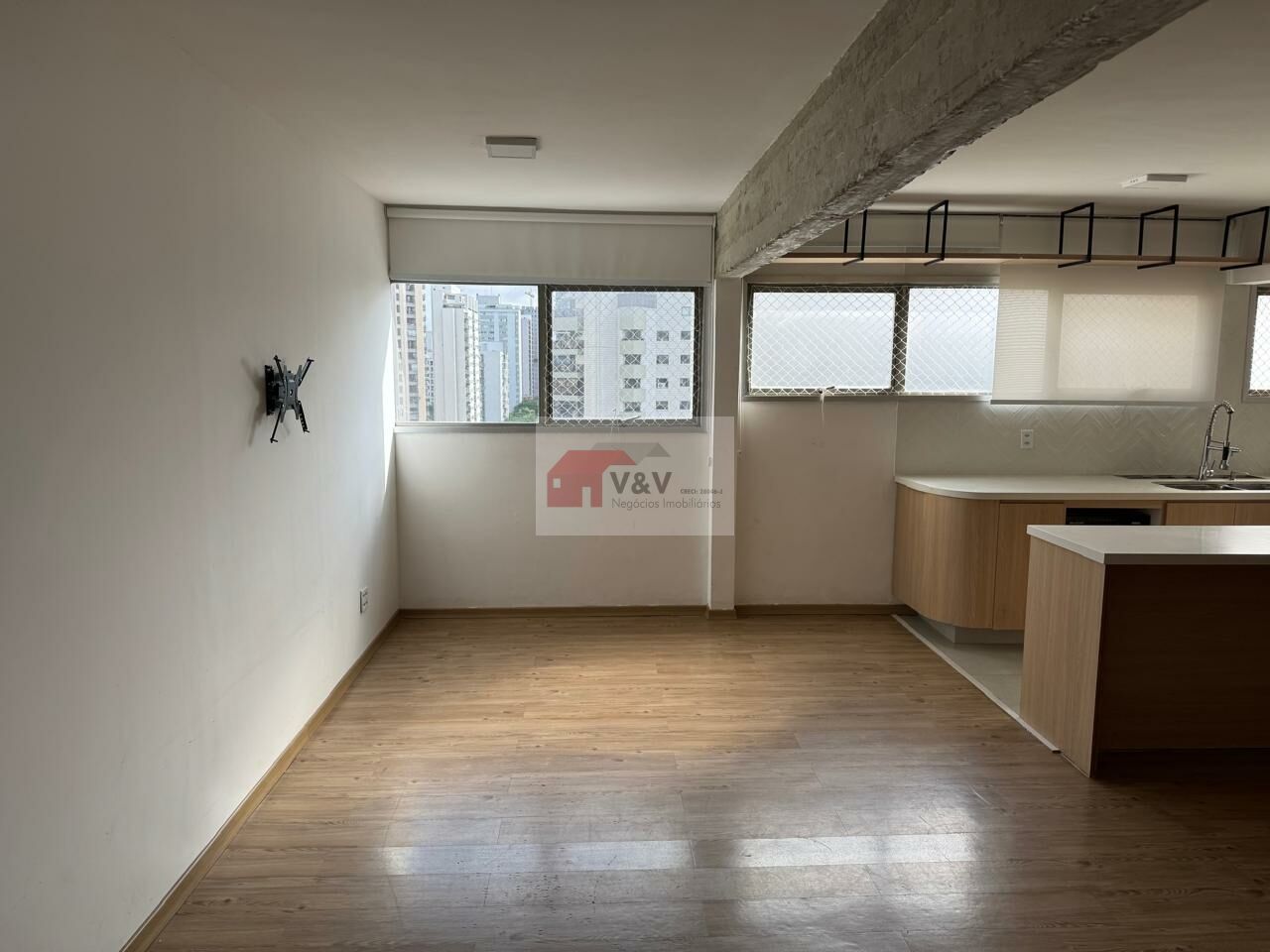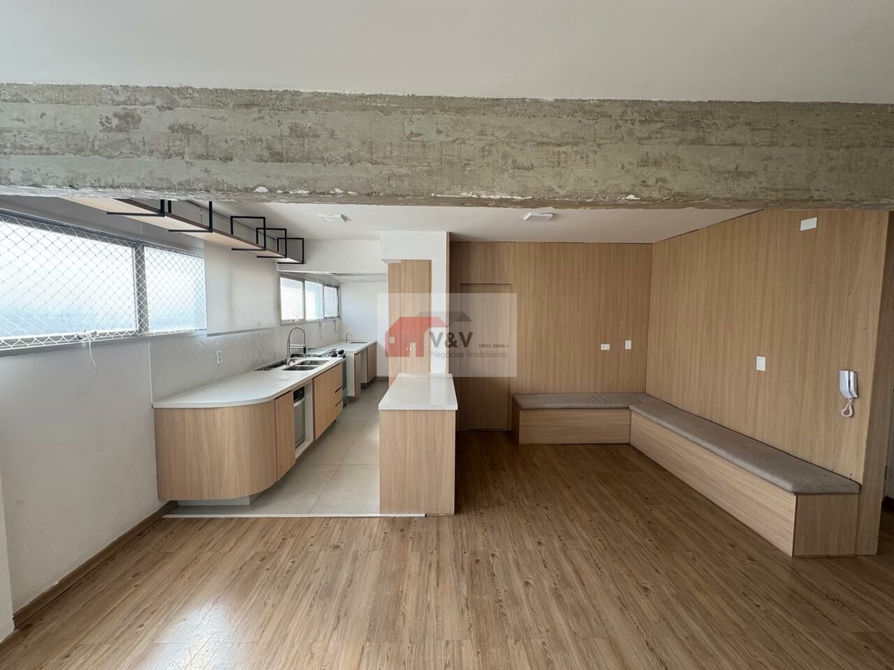 Living integrado a varanda, piso nivelado;